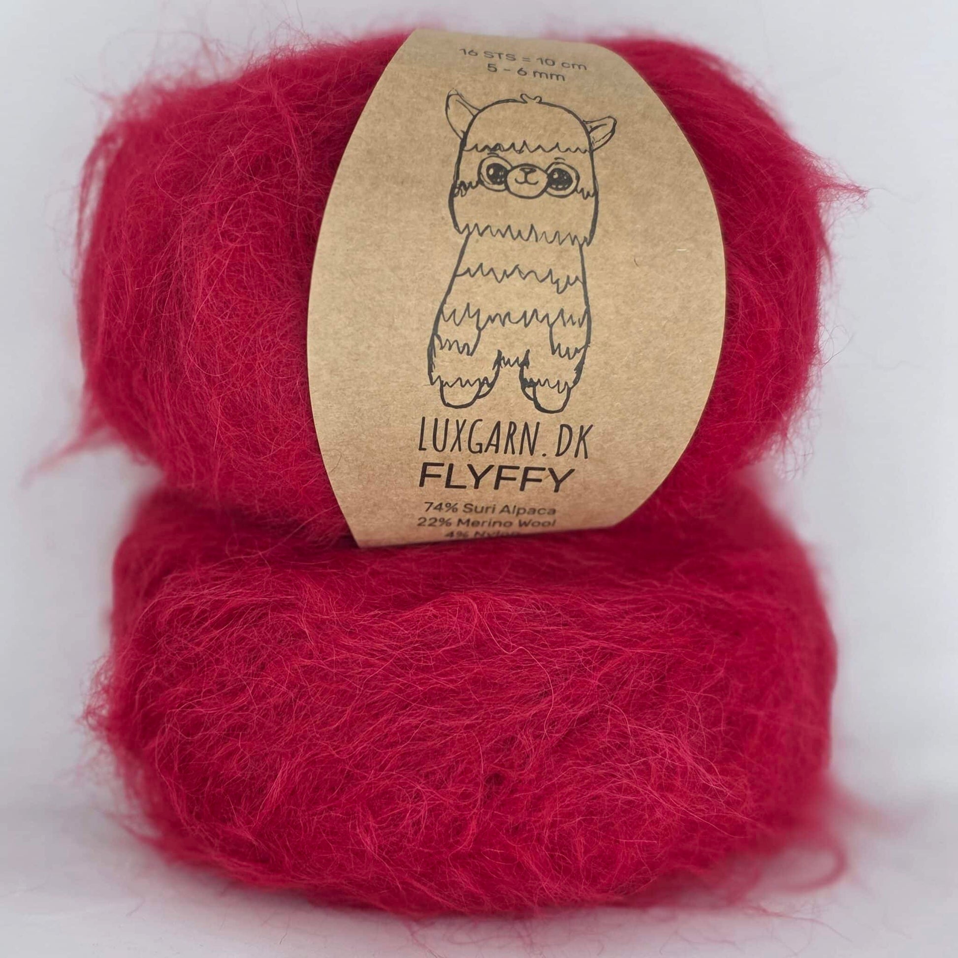 74% suri aplaka, 22% merino ull og 4% nylon til styrkingar.