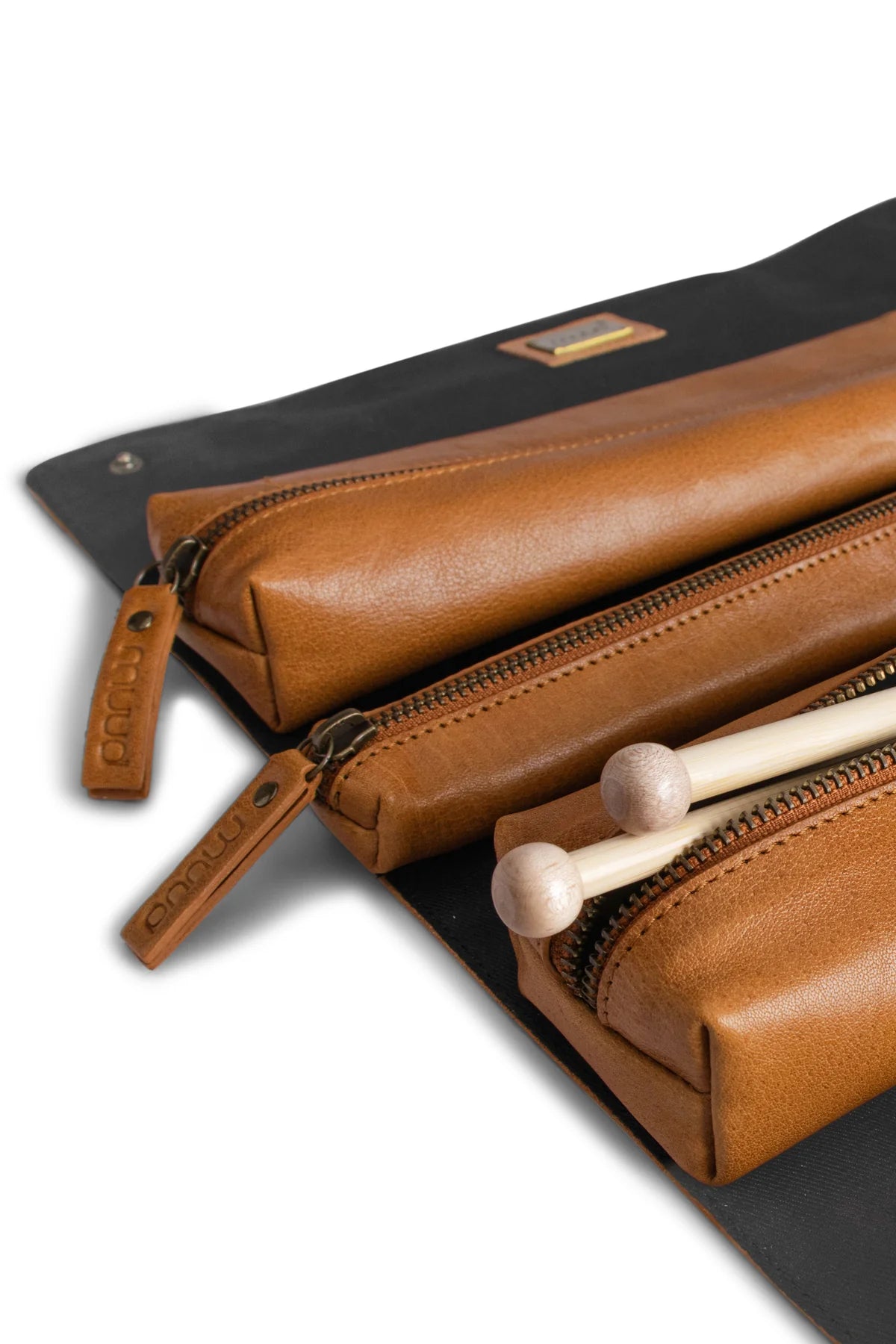 Crafted from high-quality leather, the Frankie Case combines durability with a sophisticated look. Its spacious interior and thoughtful organization make it perfect for keeping your knitting essentials in order, whether you're at home or on the go.