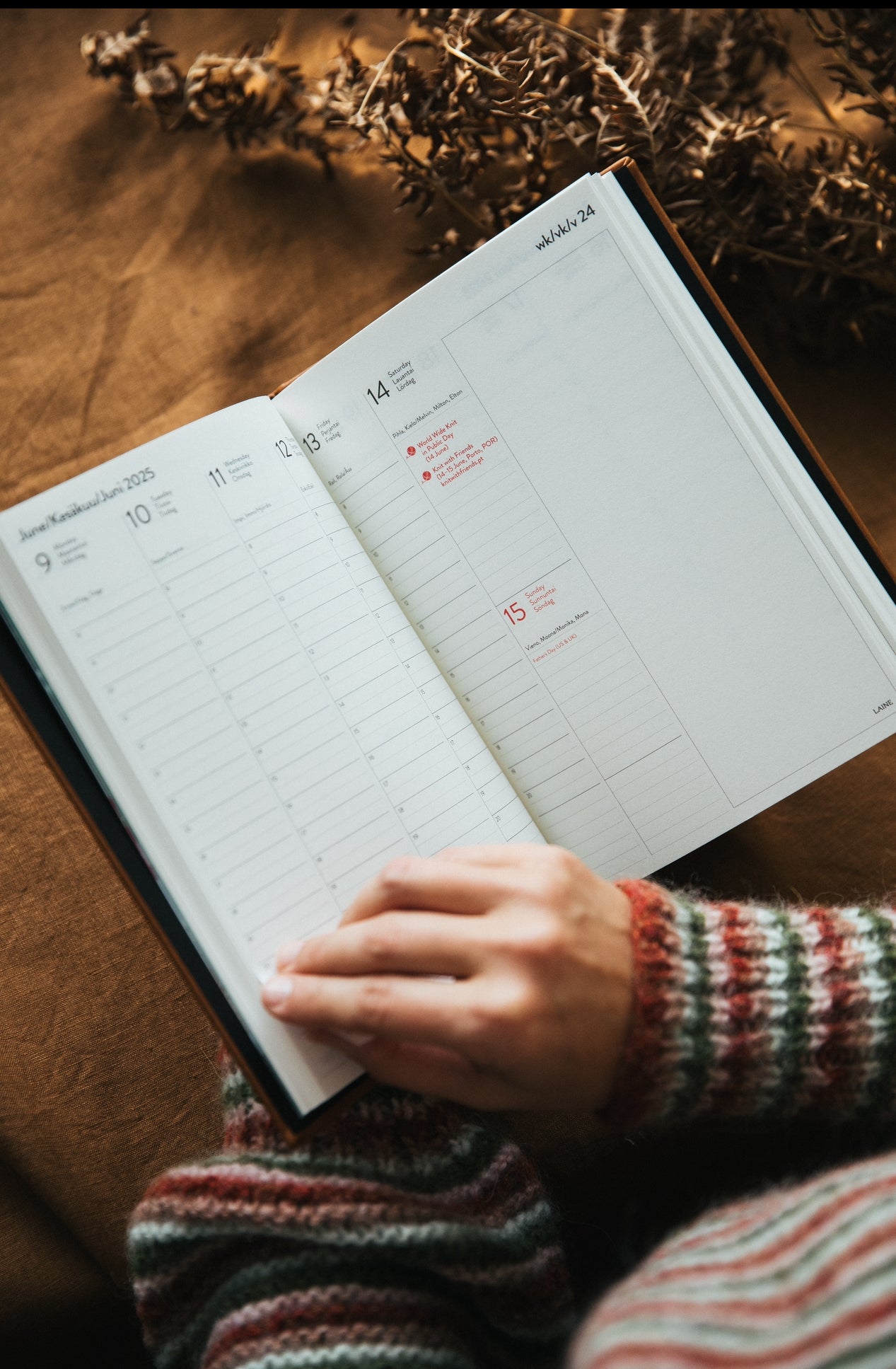 Laine’s brand-new product, Knitter’s Year 2025, is more than just a weekly planner; it is a beautifully designed, practical companion tailored especially for knitters and makers. This indispensable everyday tool offers ample space to make personal notes and sketch project ideas.