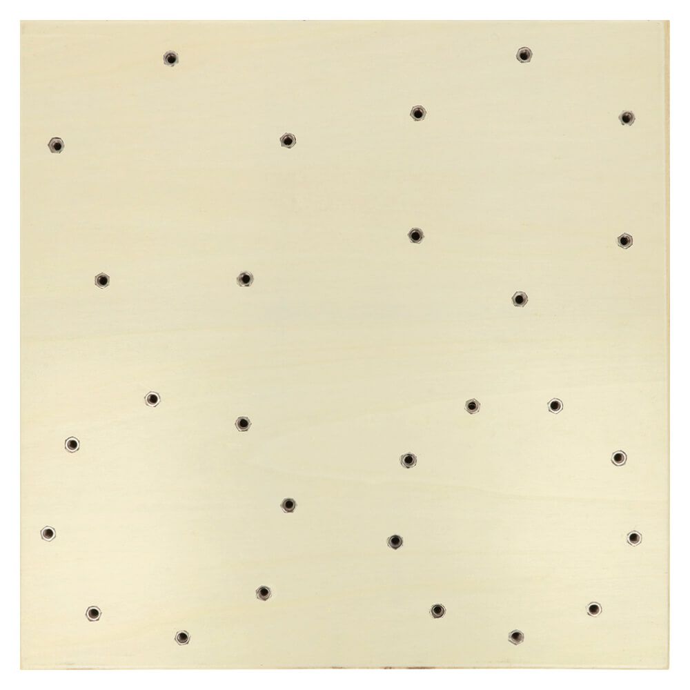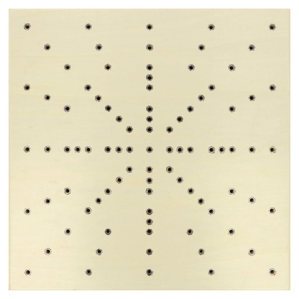 This double-sided, wooden blocking board by Opry will uncurl and straighten out your knitted or crocheted work. Thanks to the multiple holes in both sides of the board, you can block any shape you wish. Your work can be fastened to the board easily with the pins that you screw into the holes. The board measures 35 x 35cm and will be supplied with 12 pins and a handy storage bag. The pins measure 12cm long including the 1cm long screw. Extra blocking board pins are available for purchase separately.